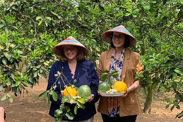 Hai Thứ trưởng Nông nghiệp Mỹ thăm vườn bưởi Diễn của nông dân Hà Nội, khen bưởi ngon xuất sắc